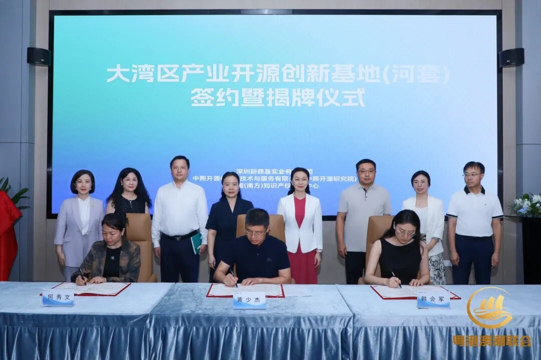为贯彻落实《粤港澳大湾区发展规划纲要》、深圳市《关于发展壮大战略性新兴产业集群和培育发展未来产业的意见》等政策文件,推动大湾区战略性新兴产业及未来产业高质量、合规、开放与可持续发展,2025年9月5日,由深圳新鼎基实业有限公司、中熙开源(深圳)技术与服务有限公司、中国(南方)知识产权运营中心三方共同发起建设的大湾区产业开源创新基地(河套)(下称“开源创新基地”)签约暨揭牌仪式在福田区国际生物医药产业园2期举行。