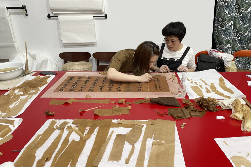 “广州的书画收藏氛围很浓厚,但要说对发霉受损的书画进行修复,就是个冷门行当了。”邱书恬介绍,大多数修复师都在北京,在广州从事这一行的两只手数得过来。但如果要学习这项技艺,往往只能进入博物馆、图书馆或高校这些专业机构,因此,她萌生了创办一家书画工作室的念头。