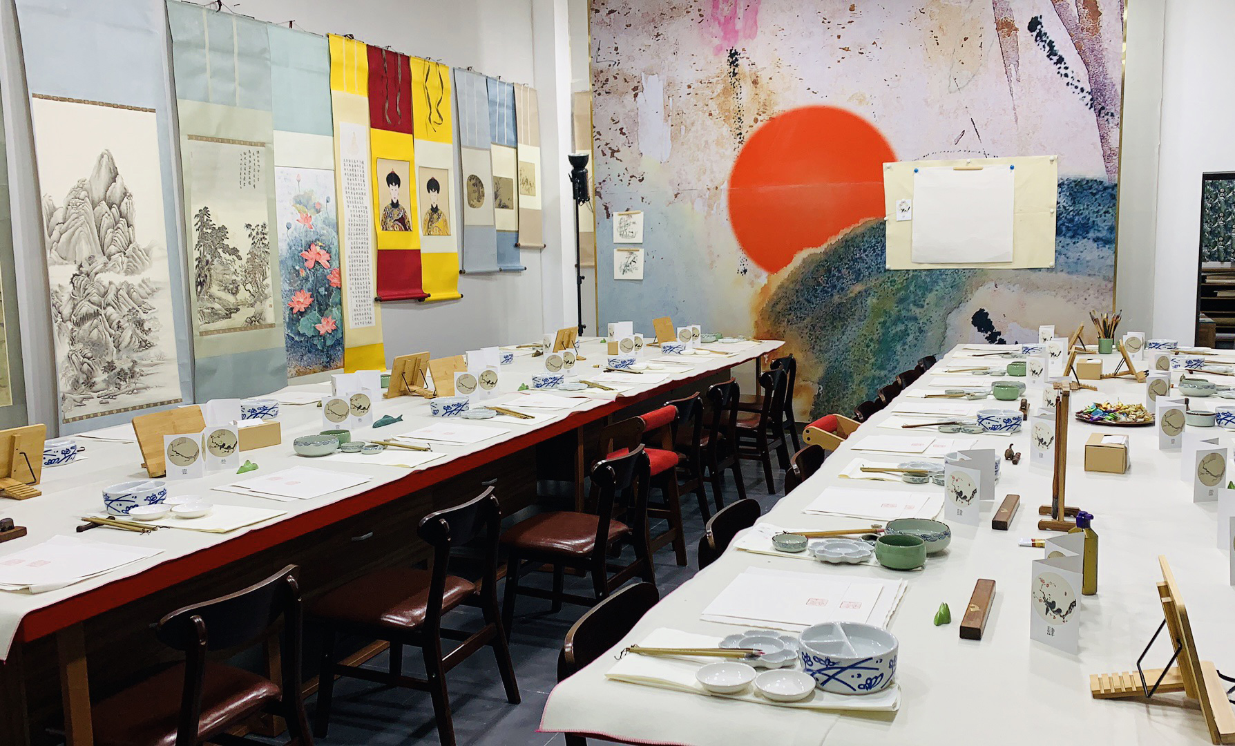 聆风簃的命名来源于邱书恬的学生,寓意为“聆听传统之风,栖息于笔墨之间”。为了打造聆风簃,邱书恬做好了万全的准备,从空间的布局,到书案的用材设计,到装裱修复的工具,都是她一点一滴亲自设计、采购的。就连课程体系,也是基于她的教学经验搭建,“我是一个完美主义者,从来不打没有准备的仗”。